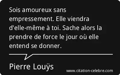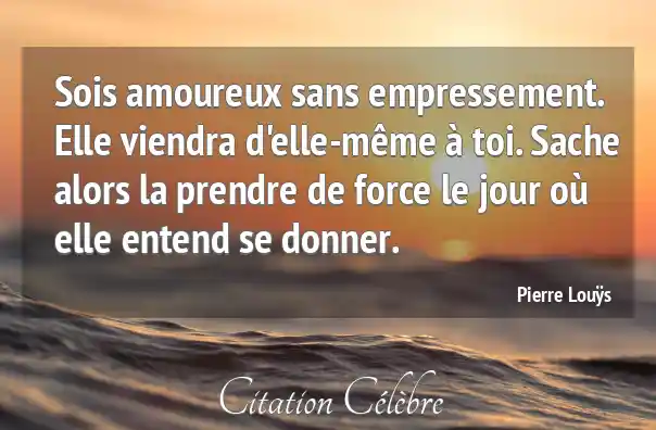 Sois amoureux sans empressement. Elle viendra d'elle-même à toi. Sache alors la prendre de force le jour où elle entend se donner.