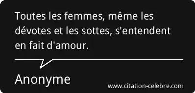 Toutes les femmes, même les dévotes et les sottes, s'entendent en fait d'amour.