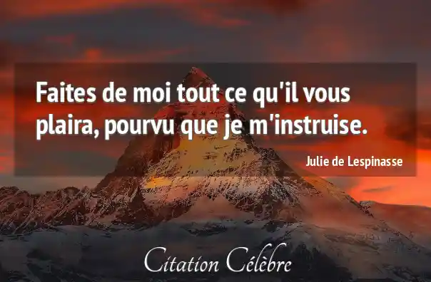 Faites de moi tout ce qu'il vous plaira, pourvu que je m'instruise.