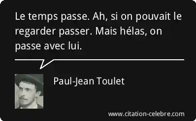 Le temps passe. Ah, si on pouvait le regarder passer. Mais hélas, on passe avec lui.