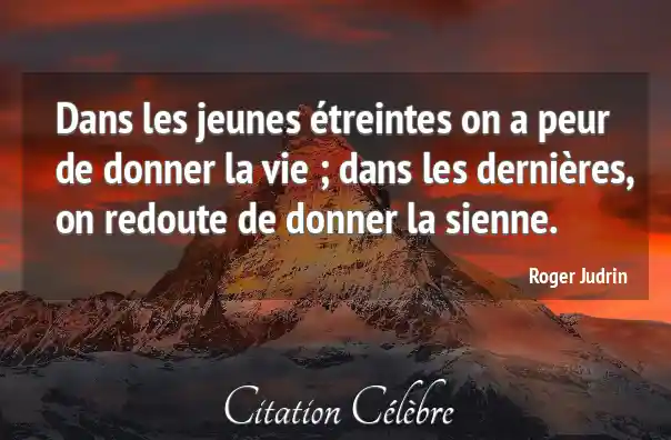 Dans les jeunes étreintes on a peur de donner la vie ; dans les dernières, on redoute de donner la sienne.