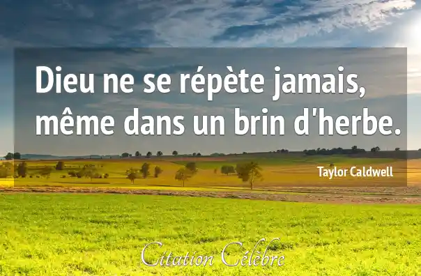 Dieu ne se répète jamais, même dans un brin d'herbe.