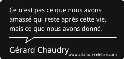 Ce n'est pas ce que nous avons amassé qui reste après cette vie, mais ce que nous avons donné.