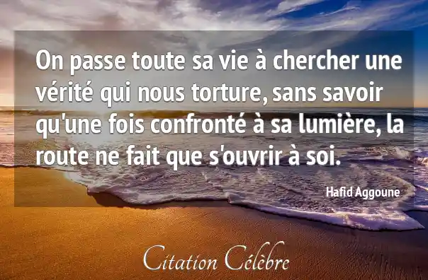 On passe toute sa vie à chercher une vérité qui nous torture, sans savoir qu'une fois confronté à sa lumière, la route ne fait que s'ouvrir à soi.