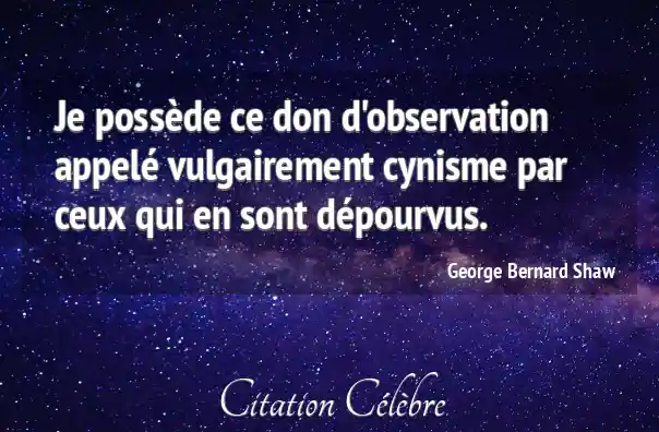 Je possède ce don d'observation appelé vulgairement cynisme par ceux qui en sont dépourvus.