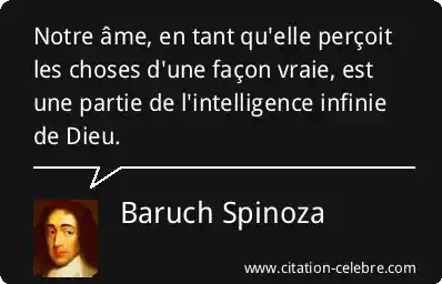 Notre âme, en tant qu'elle perçoit les choses d'une façon vraie, est une partie de l'intelligence infinie de Dieu.