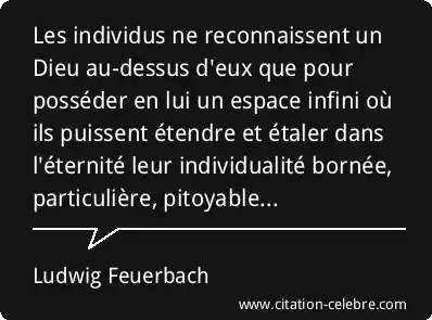 Les individus ne reconnaissent un Dieu au-dessus d'eux que pour posséder en lui un espace infini où ils puissent étendre et étaler dans l'éternité leur individualité bornée, particulière, pitoyable...