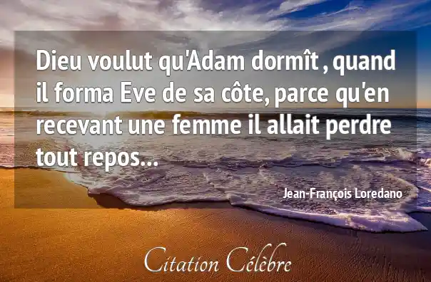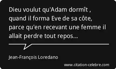 Dieu voulut qu'Adam dormît , quand il forma Eve de sa côte, parce qu'en recevant une femme il allait perdre tout repos...