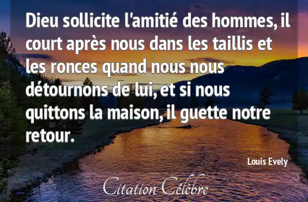 Dieu sollicite l'amitié des hommes, il court après nous dans les taillis et les ronces quand nous nous détournons de lui, et si nous quittons la maison, il guette notre retour.