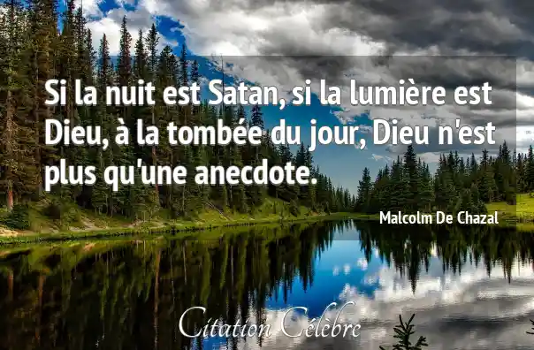 Si la nuit est Satan, si la lumière est Dieu, à la tombée du jour, Dieu n'est plus qu'une anecdote.