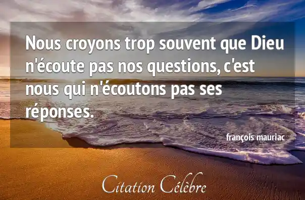 Nous croyons trop souvent que Dieu n'écoute pas nos questions, c'est nous qui n'écoutons pas ses réponses.