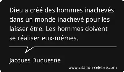 Dieu a créé des hommes inachevés dans un monde inachevé pour les laisser être. Les hommes doivent se réaliser eux-mêmes.