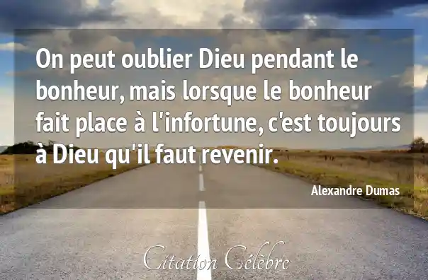 Citation Alexandre Dumas bonheur : On peut oublier Dieu pendant le bonheur, mais lorsque le...