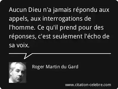Aucun Dieu n'a jamais répondu aux appels, aux interrogations de l'homme. Ce qu'il prend pour des réponses, c'est seulement l'écho de sa voix.