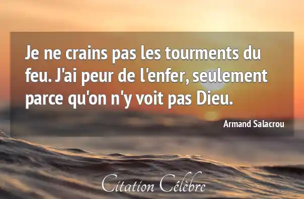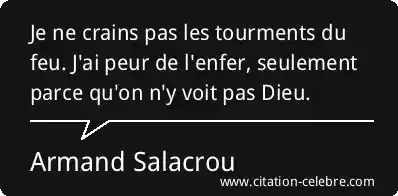 Je ne crains pas les tourments du feu. J'ai peur de l'enfer, seulement parce qu'on n'y voit pas Dieu.