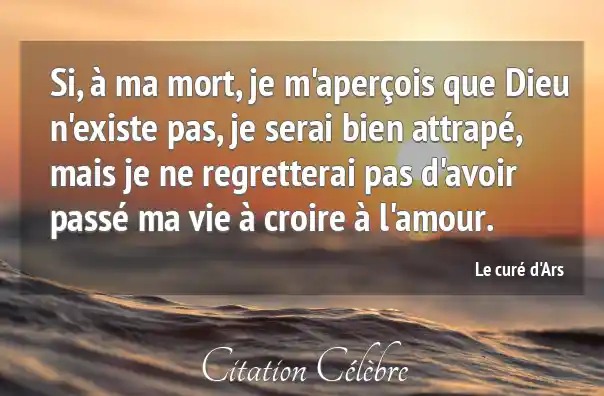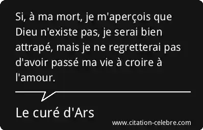 Si, à ma mort, je m'aperçois que Dieu n'existe pas, je serai bien attrapé, mais je ne regretterai pas d'avoir passé ma vie à croire à l'amour.