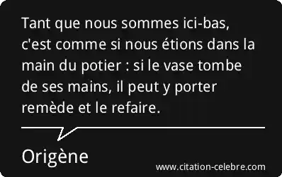 Tant que nous sommes ici-bas, c'est comme si nous étions dans la main du potier : si le vase tombe de ses mains, il peut y porter remède et le refaire.