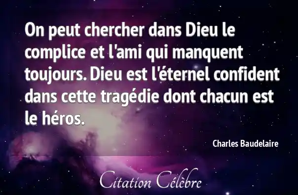 On peut chercher dans Dieu le complice et l'ami qui manquent toujours. Dieu est l'éternel confident dans cette tragédie dont chacun est le héros.