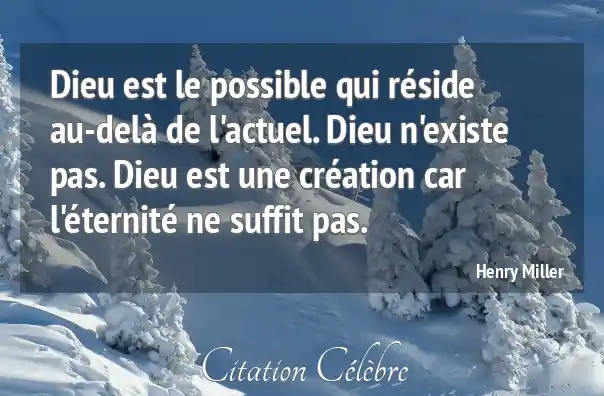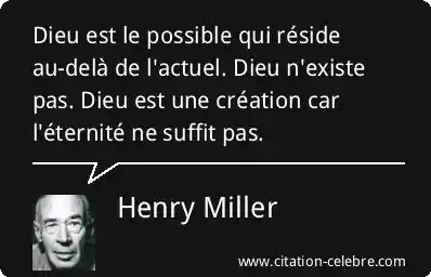 Dieu est le possible qui réside au-delà de l'actuel. Dieu n'existe pas. Dieu est une création car l'éternité ne suffit pas.