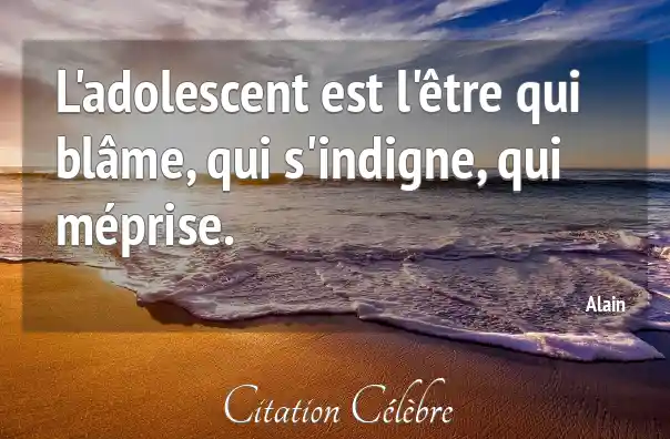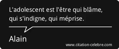 L'adolescent est l'être qui blâme, qui s'indigne, qui méprise.
