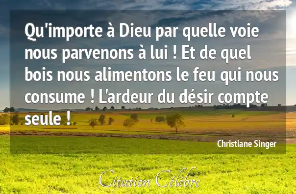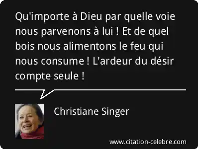 Qu'importe à Dieu par quelle voie nous parvenons à lui ! Et de quel bois nous alimentons le feu qui nous consume ! L'ardeur du désir compte seule !