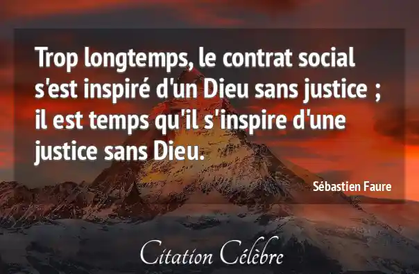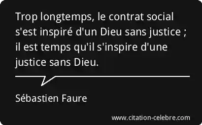 Trop longtemps, le contrat social s'est inspiré d'un Dieu sans justice ; il est temps qu'il s'inspire d'une justice sans Dieu.