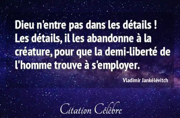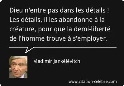 Dieu n'entre pas dans les détails ! Les détails, il les abandonne à la créature, pour que la demi-liberté de l'homme trouve à s'employer.