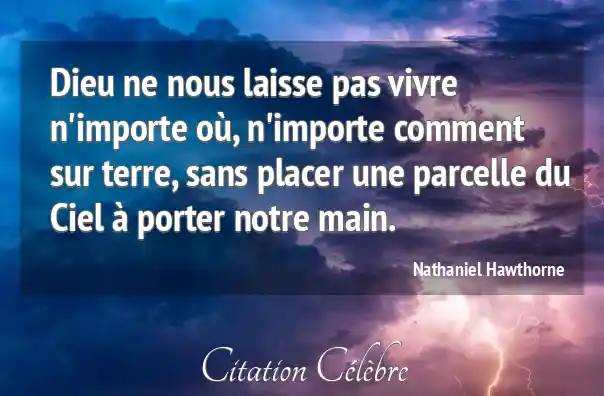 Dieu ne nous laisse pas vivre n'importe où, n'importe comment sur terre, sans placer une parcelle du Ciel à porter notre main.