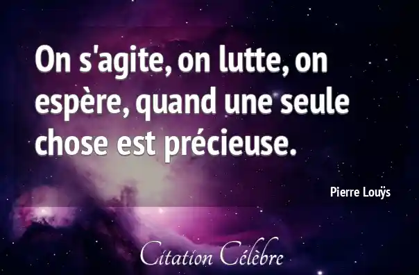 On s'agite, on lutte, on espère, quand une seule chose est précieuse.