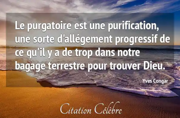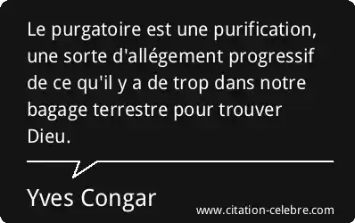 Le purgatoire est une purification, une sorte d'allégement progressif de ce qu'il y a de trop dans notre bagage terrestre pour trouver Dieu.