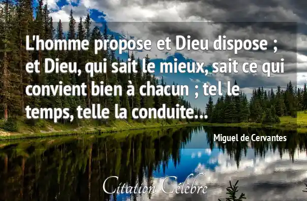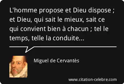 L'homme propose et Dieu dispose ; et Dieu, qui sait le mieux, sait ce qui convient bien à chacun ; tel le temps, telle la conduite...