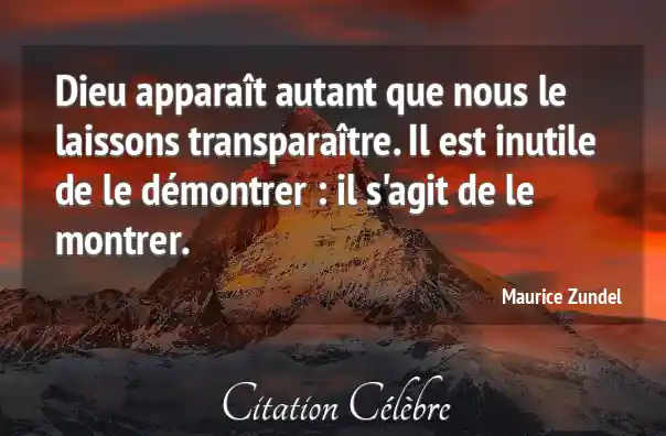 Dieu apparaît autant que nous le laissons transparaître. Il est inutile de le démontrer : il s'agit de le montrer.