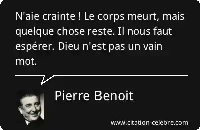 N'aie crainte ! Le corps meurt, mais quelque chose reste. Il nous faut espérer. Dieu n'est pas un vain mot.
