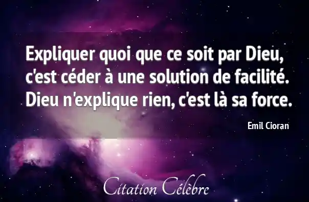 Expliquer quoi que ce soit par Dieu, c'est céder à une solution de facilité. Dieu n'explique rien, c'est là sa force.