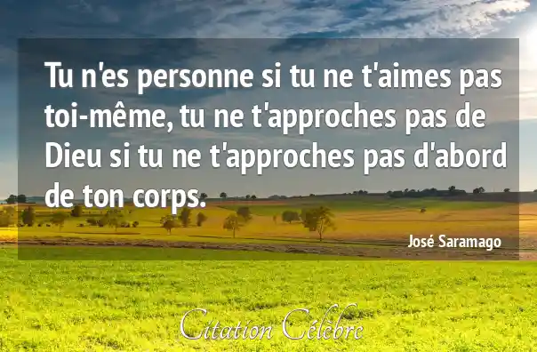 Tu n'es personne si tu ne t'aimes pas toi-même, tu ne t'approches pas de Dieu si tu ne t'approches pas d'abord de ton corps.