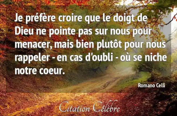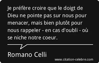 Je préfère croire que le doigt de Dieu ne pointe pas sur nous pour menacer, mais bien plutôt pour nous rappeler - en cas d'oubli - où se niche notre coeur.