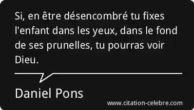 Si, en être désencombré tu fixes l'enfant dans les yeux, dans le fond de ses prunelles, tu pourras voir Dieu.