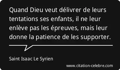 Quand Dieu veut délivrer de leurs tentations ses enfants, il ne leur enlève pas les épreuves, mais leur donne la patience de les supporter.