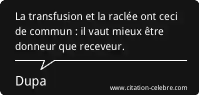 La transfusion et la raclée ont ceci de commun : il vaut mieux être donneur que receveur.