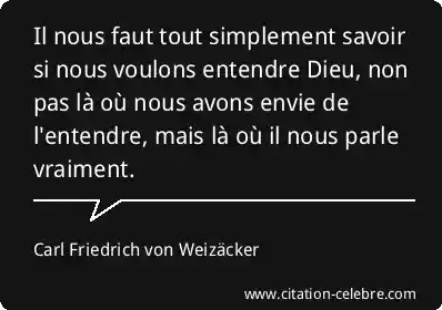 Il nous faut tout simplement savoir si nous voulons entendre Dieu, non pas là où nous avons envie de l'entendre, mais là où il nous parle vraiment.