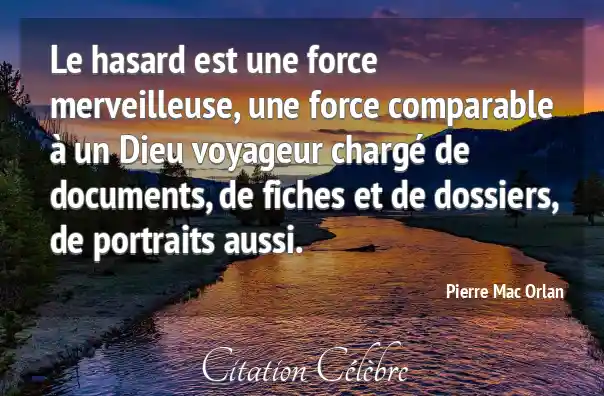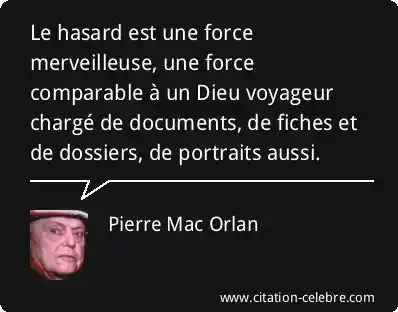 Le hasard est une force merveilleuse, une force comparable à un Dieu voyageur chargé de documents, de fiches et de dossiers, de portraits aussi.