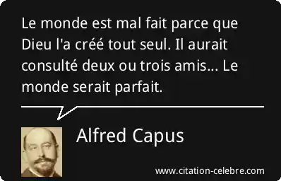 Le monde est mal fait parce que Dieu l'a créé tout seul. Il aurait consulté deux ou trois amis... Le monde serait parfait.