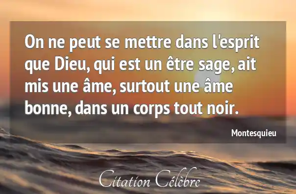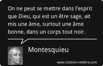 On ne peut se mettre dans l'esprit que Dieu, qui est un être sage, ait mis une âme, surtout une âme bonne, dans un corps tout noir.