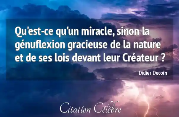 Qu'est-ce qu'un miracle, sinon la génuflexion gracieuse de la nature et de ses lois devant leur Créateur ?