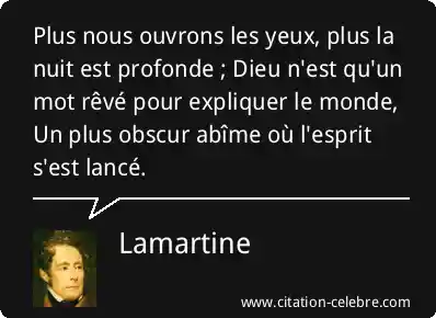Plus nous ouvrons les yeux, plus la nuit est profonde ; Dieu n'est qu'un mot rêvé pour expliquer le monde, Un plus obscur abîme où l'esprit s'est lancé.