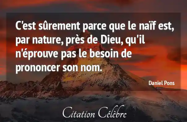C'est sûrement parce que le naïf est, par nature, près de Dieu, qu'il n'éprouve pas le besoin de prononcer son nom.