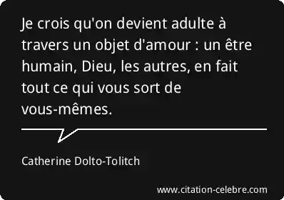 Je crois qu'on devient adulte à travers un objet d'amour : un être humain, Dieu, les autres, en fait tout ce qui vous sort de vous-mêmes.