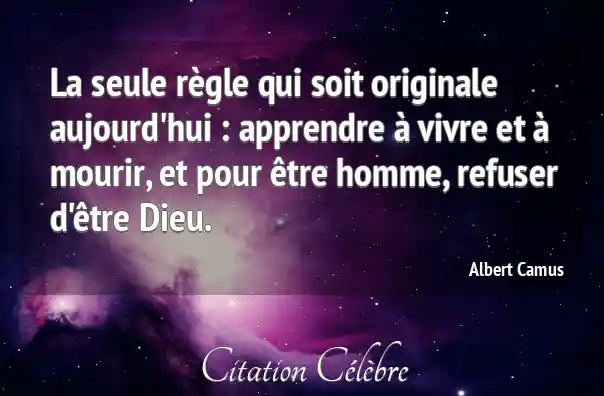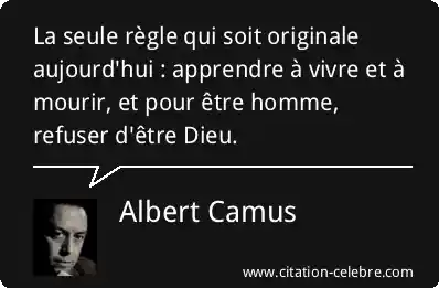 La seule règle qui soit originale aujourd'hui : apprendre à vivre et à mourir, et pour être homme, refuser d'être Dieu.