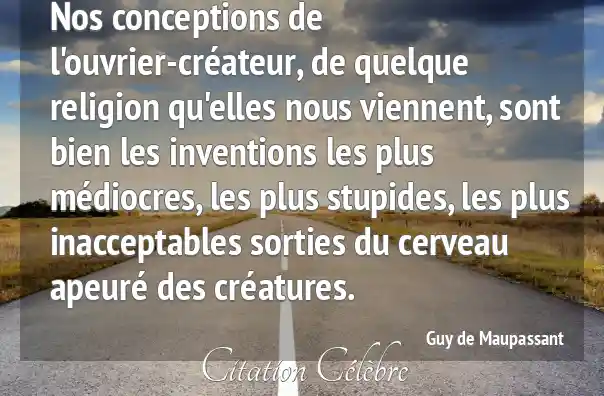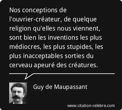 Nos conceptions de l'ouvrier-créateur, de quelque religion qu'elles nous viennent, sont bien les inventions les plus médiocres, les plus stupides, les plus inacceptables sorties du cerveau apeuré des créatures.