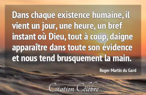 Dans chaque existence humaine, il vient un jour, une heure, un bref instant où Dieu, tout à coup, daigne apparaître dans toute son évidence et nous tend brusquement la main.